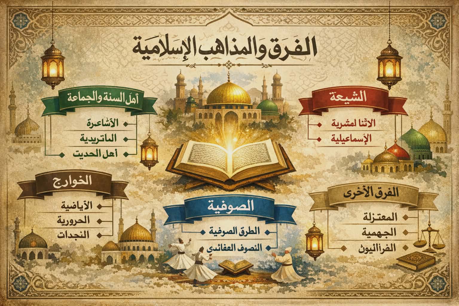 يدرس مقياس الحركات المذهبية وتطورها في المشرق والمغرب الإسلامي نشأة الفرق والتيارات الفكرية التي ظهرت داخل العالم الإسلامي عبر العصور. وقد برزت هذه الحركات في البداية نتيجة الخلافات السياسية التي نشأت بعد وفاة النبي ﷺ، خاصة حول قضية الخلافة، مما أدى إلى ظهور فرق مثل الشيعة والخوارج. وفي المشرق الإسلامي تطورت المدارس الكلامية، فظهرت المعتزلة التي اعتمدت على العقل في تفسير العقائد، ثم الأشاعرة الذين سعوا إلى التوفيق بين العقل والنقل بقيادة أبي الحسن الأشعري. كما برزت المذاهب الفقهية السنية الكبرى مثل مذهب مالك بن أنس ومذهب أبي حنيفة النعمان. أما في المغرب الإسلامي فقد انتشر المذهب المالكي انتشارًا واسعًا حتى أصبح المذهب الغالب والرسمي في المنطقة، إلى جانب انتشار المذهب الإباضي في بعض المناطق مثل الجزائر وعمان. كما شهدت المنطقة قيام الدولة الفاطمية ذات التوجه الشيعي في شمال إفريقيا. وقد تأثرت هذه الحركات والاتجاهات الفكرية بالظروف السياسية والاجتماعية الخاصة بكل منطقة، وأسهمت في تشكيل الحياة الدينية والفكرية للمسلمين، إضافة إلى دورها في إنشاء المؤسسات العلمية مثل المساجد والمدارس. ويهدف هذا المقياس إلى التعرف على تطور الفكر الإسلامي وتنوع اتجاهاته عبر الزمن.
