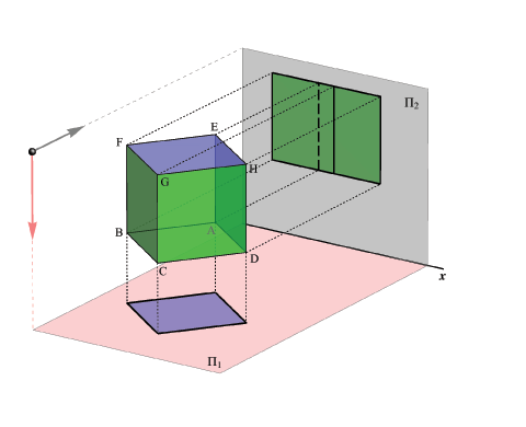 - In this subject, the three-dimensional object is first presented through its two projections (horizontal and frontal) in the form of a geometric drawing. Then, by its axonometric image in space.
