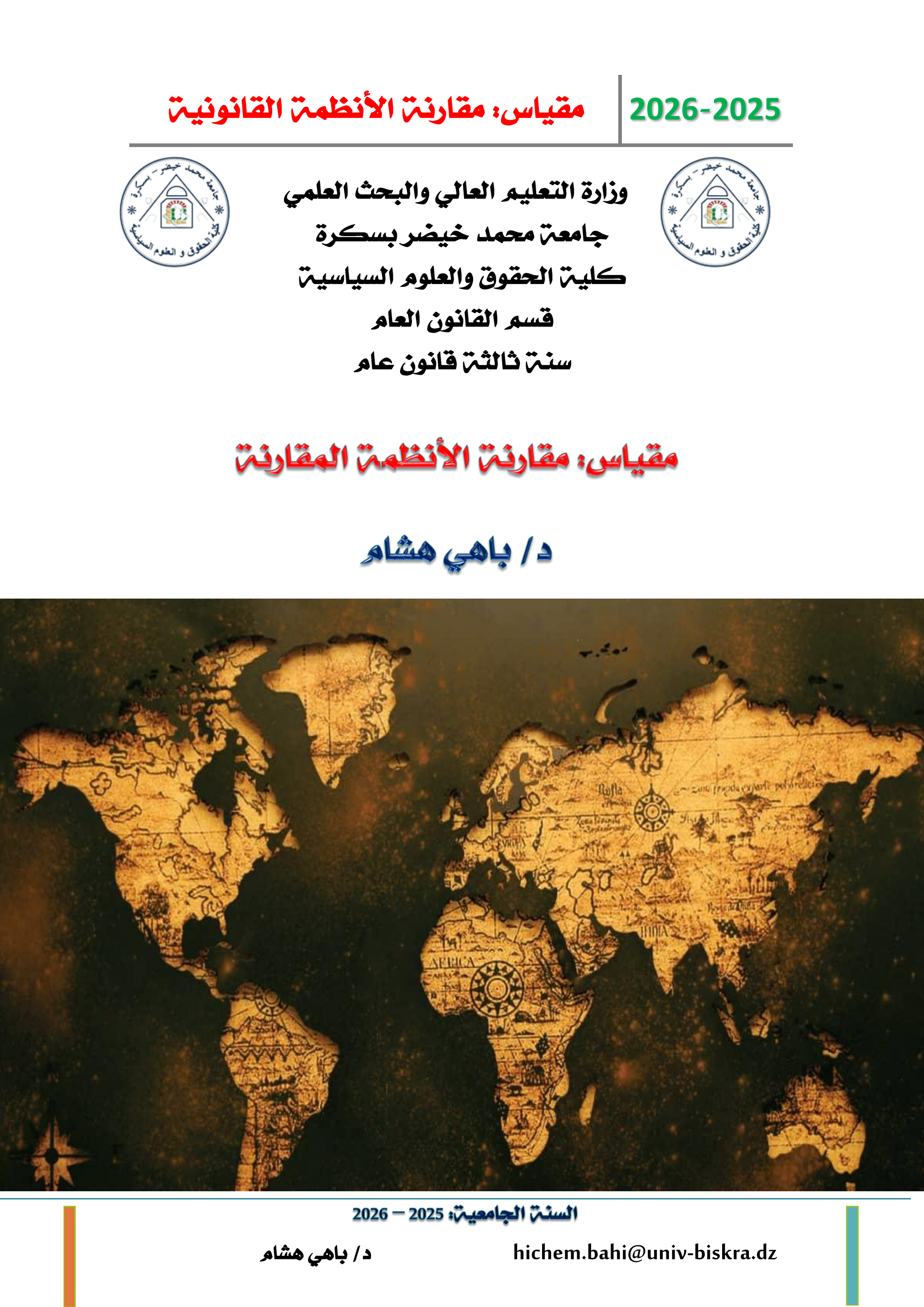 وعلى هذا الأساس، ستكون دراسة مقياس: مقارنة الانظمة القانونية كالتالي: