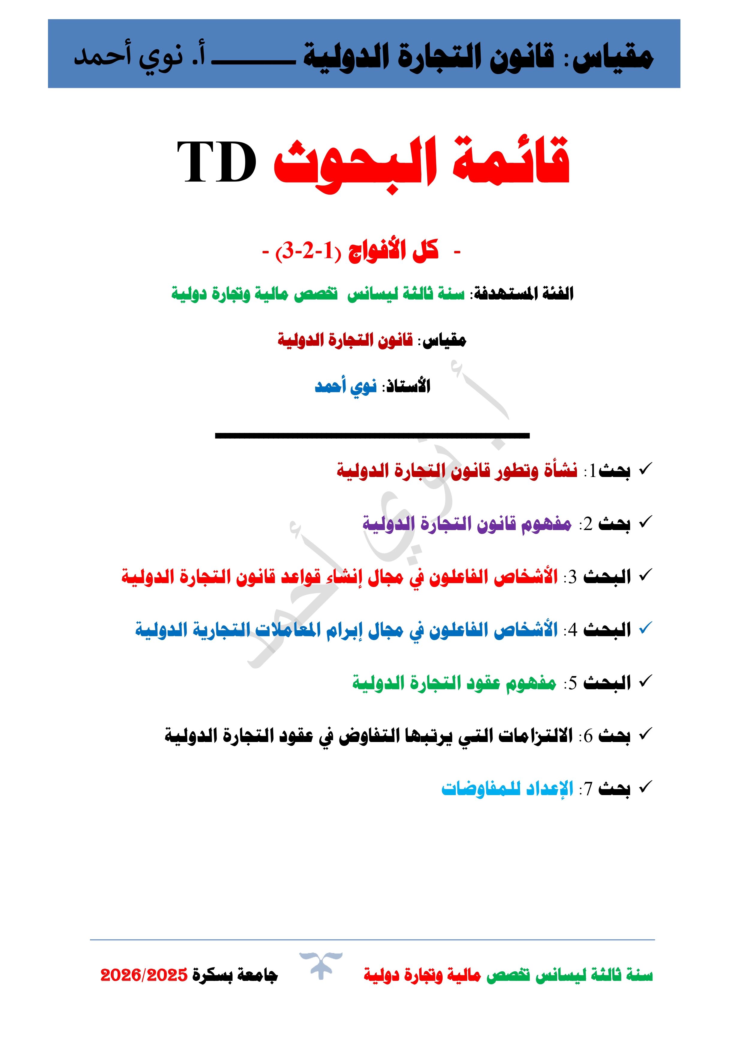 Select activity مطبوعة مقياس قانون التجارة الدولية