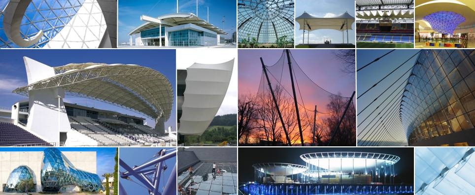 A spatial structure (three-dimensional or cross-beam or tensile structure) is made up of bars, plates or walls linked together in such a way as to be self-sufficient in resisting forces from all directions in space.