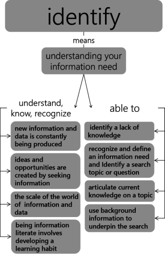 - إدراك الحاجة إلى المعلومات والبيانات لتحقيق غاية محددة وتحديد حدود الحاجة إلى المعلومات