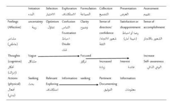 نموذج آخر مهم " لعملية البحث عن المعلومات"، والذي يحدد ست مراحل يمر بها الأفراد عند البحث عن المعلومات، وهي: البدء، والاختيار، والاستكشاف، والتشكيل، والجمع، والعرض. يسلط هذا النموذج الضوء على الجوانب العاطفية والمعرفية التي ترافق كل مرحلة من مراحل البحث عن المعلومات.