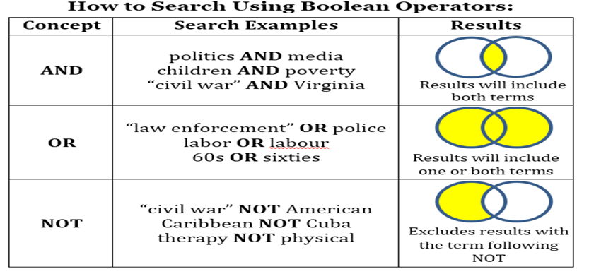 -AND: ويستخدم للبحث عن الموضوع والمصطلحات بدقة لمعالجة التشويش ويتم البحث من خلال استخدام إستراتجية البحث المركب أو المعقد.